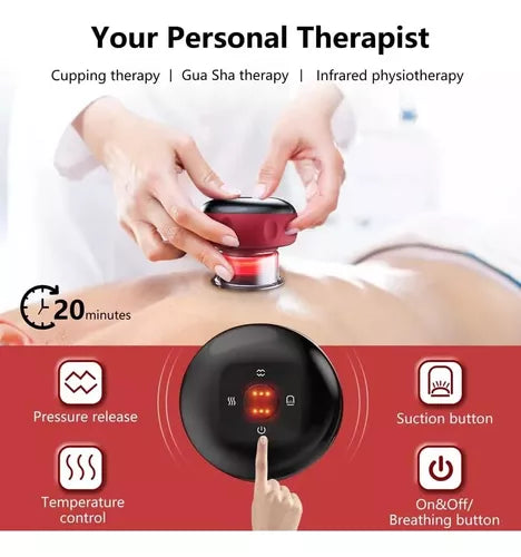 - Terapia de ventosas avanzada 🌀: Combina la técnica tradicional de succión con la comodidad de una ventosa eléctrica, mejorando la circulación y promoviendo la desintoxicación natural del cuerpo.